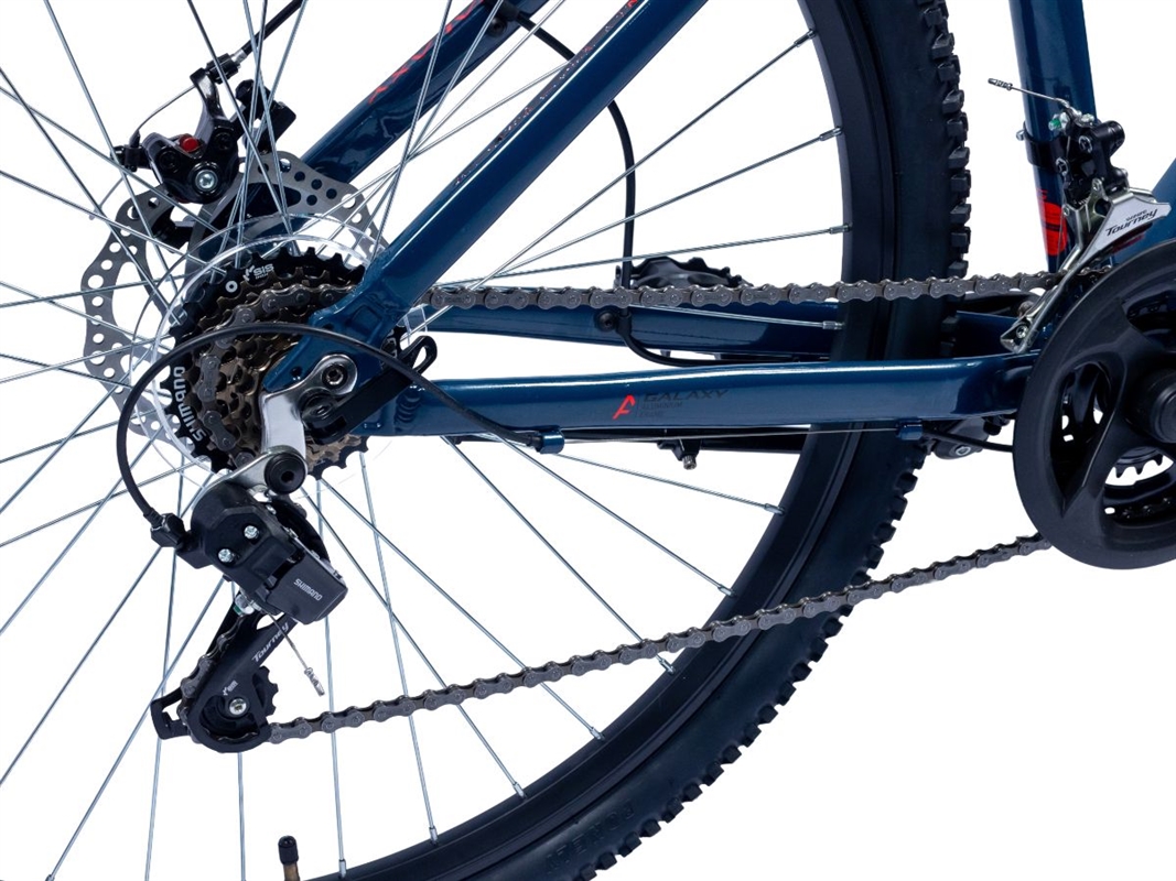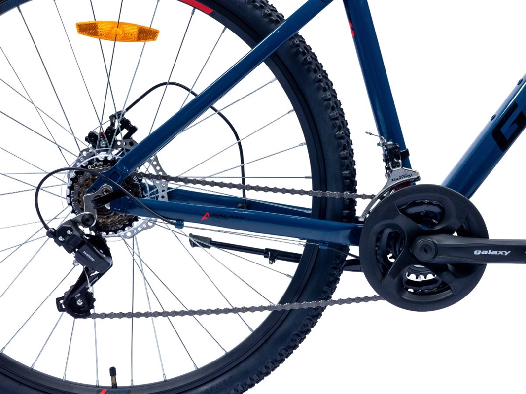 Spoj laganog aluminijumskog rama i vrhunske SHIMANO opreme čine bicikl GALAXY ATLAS 29"/21 savršenim MTB izborom. Robustan, a lagan GALAXY ATLAS 29"/21 odiše snagom i lakoćom koja se oseti svakim okretom pedale. Prednja vila MODE N721G sa amortizerima vožnju po neravnim terenima čini prijatnom, dok RADIUS mehaničke disk kočnice obezbeđuju sigurno i lako zaustavljanje u svakoj situaciji. Za posebnu vožnje pobrinuće se kombinovane ručice kočnice i menjača Shimano Tourney ST-EF41 3/7 koje odlikuje velika brzina menjanja brzina i lakoća potiska ručice kočnice. Za potpun užitak vrhunske vožnje bicikl GALAXY ATLAS 29"/21 je opremljen odličnim prednjim menjačem SHIMANO FD-TY300 i zadnjim menjačem SHIMANO Tourney RD-TY200-GS, dok će se za dugovečnost ove adrenalinske vožnje pobrinuti račna SHIMANO Tourney MF-TZ500-7.
