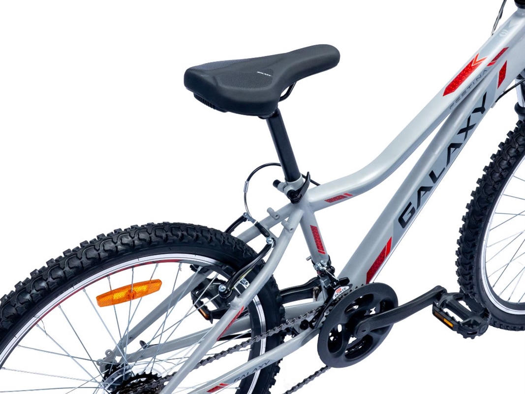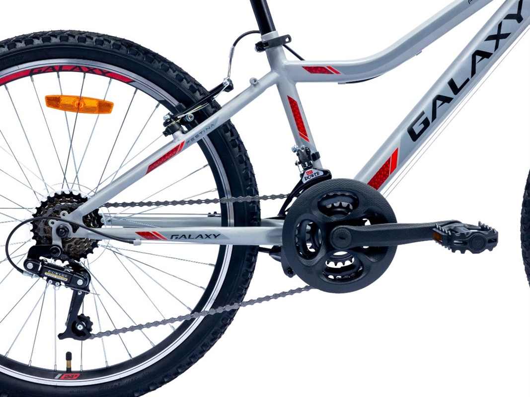 Bicikl GALAXY FESTINA 24"/18 je MTB bicikl dizajniran za vožnju po različitim terenima. Odlikuje ga čelični ram koji pruža čvrstinu i stabilnost tokom vožnje. Posebno dizaniran ram čini ovaj bicikl idealnim izborom za decu i niže osobe, a predstavlja i odličan izbor kao prelazni bicikl sa dečijeg na malo ozbiljniji bicikl.