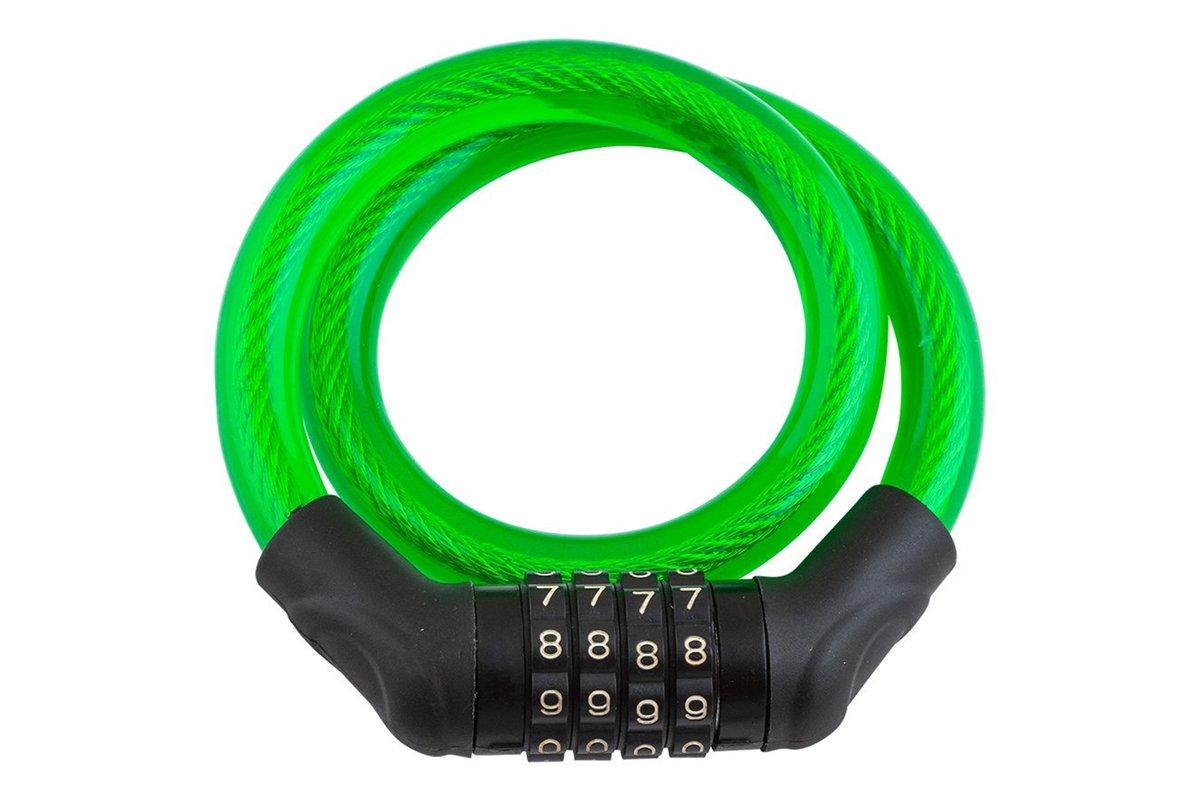 Brava 3121134 sa čeličnom sajlom obloženom od plastičnih materijala koja štite bicikl od grebanja, cilindar brave je na šifru koja podrazumeva kombinaciju 4 cifre.
