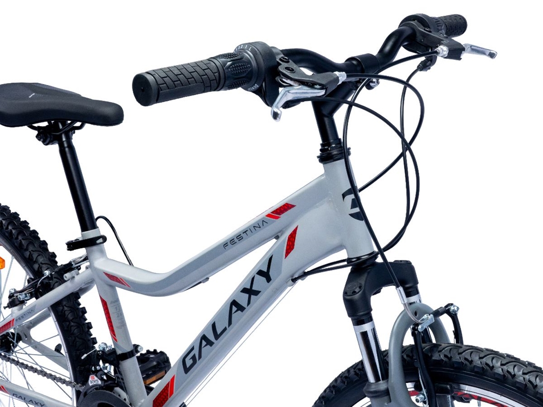 Bicikl GALAXY FESTINA 24"/18 je MTB bicikl dizajniran za vožnju po različitim terenima. Odlikuje ga čelični ram koji pruža čvrstinu i stabilnost tokom vožnje. Posebno dizaniran ram čini ovaj bicikl idealnim izborom za decu i niže osobe, a predstavlja i odličan izbor kao prelazni bicikl sa dečijeg na malo ozbiljniji bicikl.